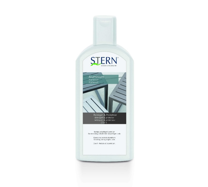 Zur Pflege Ihrer Aluminium-Möbel ist dieses Produkt unverzichtbar. Dieser Reiniger beseitigt u.a. Schmutz, hartnäckige Ablagerungen, Fettflecken, Fingerabdrücke und das Aluminium wird wieder glänzend. Dieser Allrounder reinigt und pflegt Aluminium für einen langanhaltenden, neuwertigen Look. 0,5 L ca. 26 €.