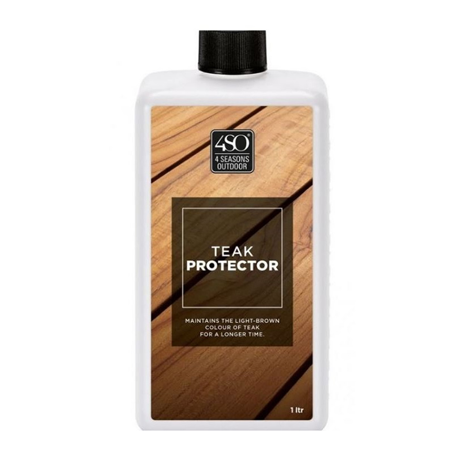 Der Teak-Protector bietet wirksamen Schutz vor dem Vergrauen des Teakholzes und erhält die honigbraune Farbe. Die Wirkung hält deutlich länger an als bei herkömmlichen Teak-Ölen. Zudem wird der Protector auf Wasserbasis hergestellt, ist somit nicht fettig, nicht brennbar, umweltverträglich, lässt sich schnell und einfach anwenden. Bei geöltem oder bereits vergrautem Holz bitte vor Anwendung den Teak-Reiniger benutzen. Weitere Infos auf www.golden-care.com. Teak-Protector 1 Liter ca. 39 €.
