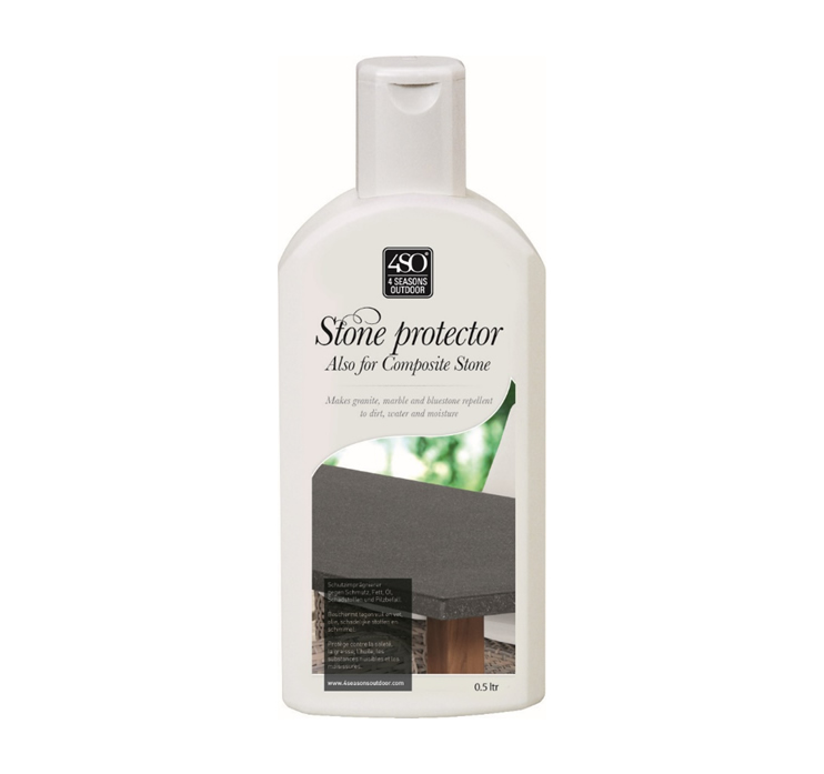 Der Stone-Protector findet Anwendung bei Steintischen, Spraystone und Mosaiktischen. Es handelt sich um eine Schutzimprägnierung, durch die Lebensmittel (Kaffee, Ketchup, Rotwein, Olivenöl usw.) nicht in den Naturstein eindringen und Flecken verursachen können. Stone-Protector 0,5 L ca. 22 €.