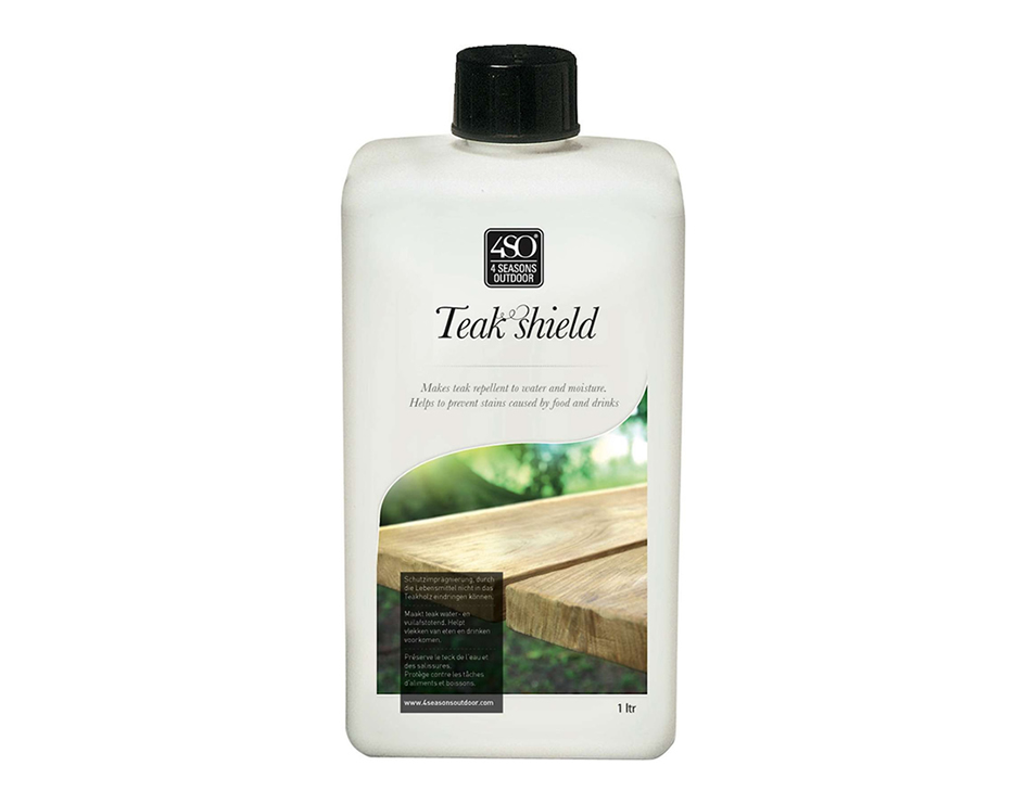Teak-Shield ist eine transparente Schutzimprägnierung, durch die Lebensmittelflecken (Kaffee, Ketchup, Rotwein, Olivenöl usw.) nicht in das Holz eindringen und Flecken verursachen können. Die Entwicklung der typisch silbergrauen Patina ist hierbei gewährleistet. Zudem sorgt das Teak-Shield für einen langen Erhalt der silbergrauen Patina ohne grünlichen Anschlag oder dunkelgrau zu werden. Weitere Infos auf www.golden-care.com. Teak-Shield 1 Liter ca. 39 €.