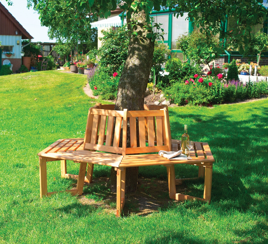 Das Thema „Baumbank“ ist recht speziell – trotzdem hat das Sortiment von Meyer`s Mühle Gartenmöbel hier einiges zu bieten. Klassischerweise versteht man unter dem Begriff eine gerundete Bank, die einen Baumstamm umschließt. Die Baumbank gibt es in verschiedenen Holzarten, so zum Beispiel aus Teakholz oder Kiefernholz.