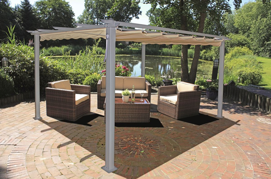 Für den schnellen Gebrauch bieten sich sogenannte „Faltpavillons“ an: sie lassen sich durch ihre Falttechnik in Windeseile herbeiholen und aufstellen. Sie bieten mit ihrer Größe von 3 x 3 m auch schon recht großflächigen Sonnenschutz. Fest installierte Pavillons sind teilweise auch größer als 3 x 3 m und mit festem Dach möglich.